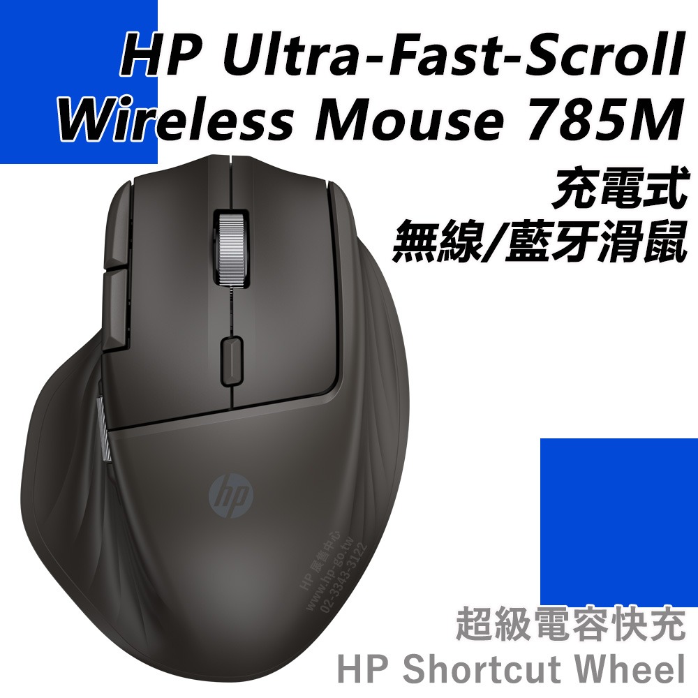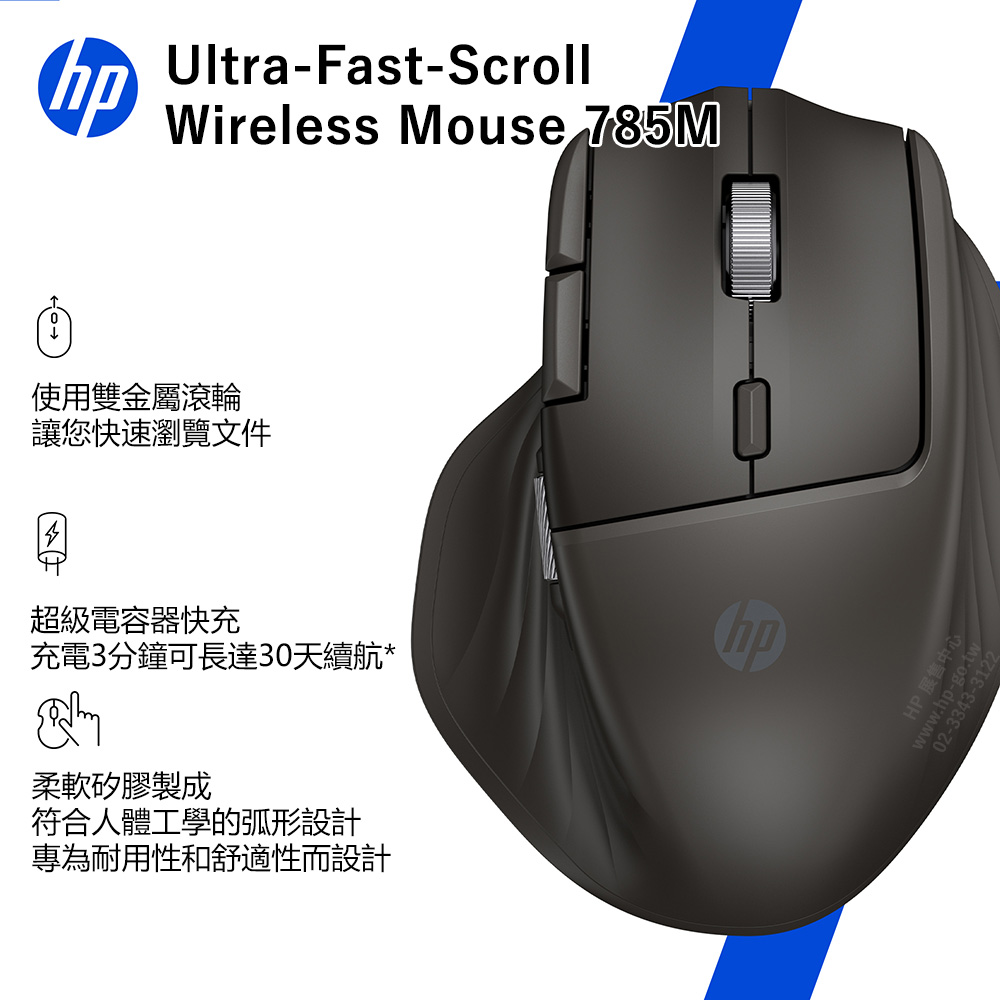HP Ultra-Fast-Scroll Wireless Mouse 785M、USB-C充電線 |