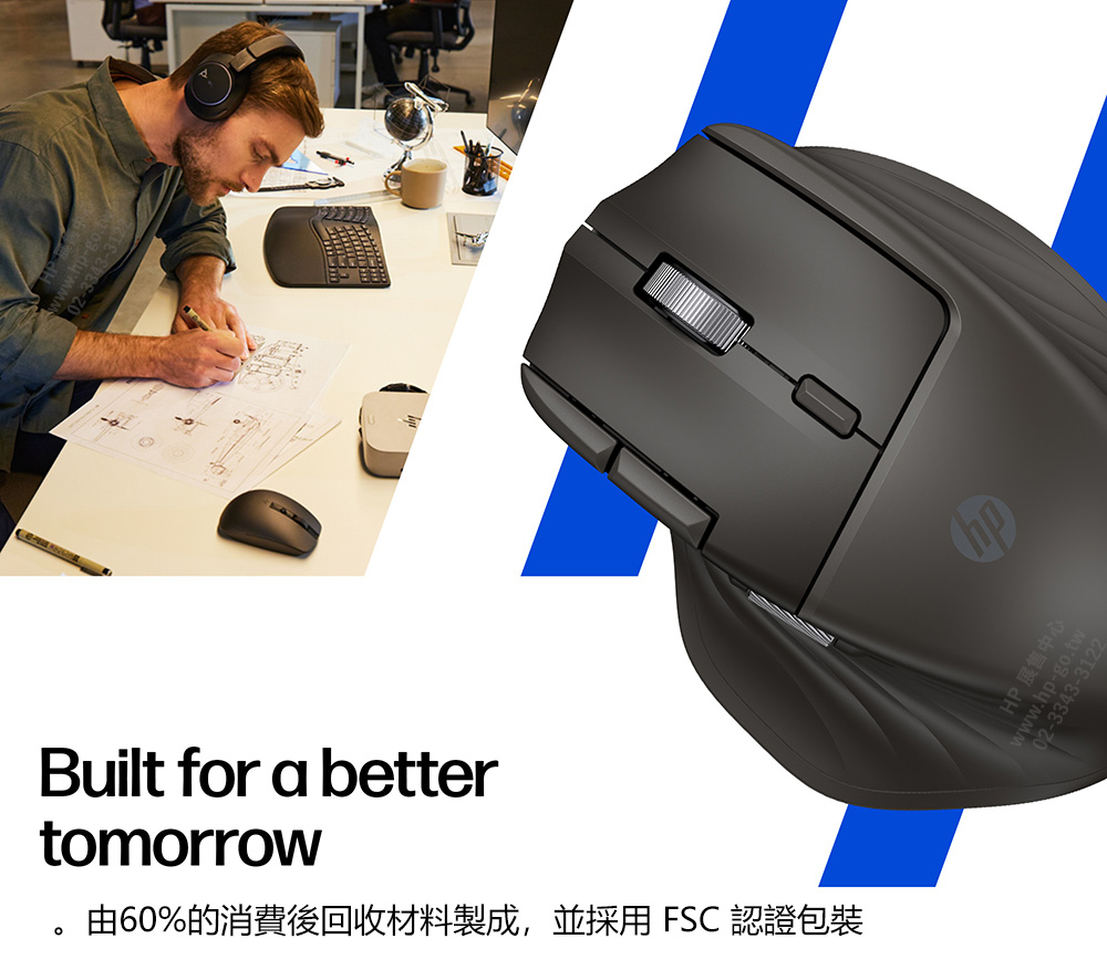 。由60%的消費後回收材料製成,並採用 FSC 認證包裝 |